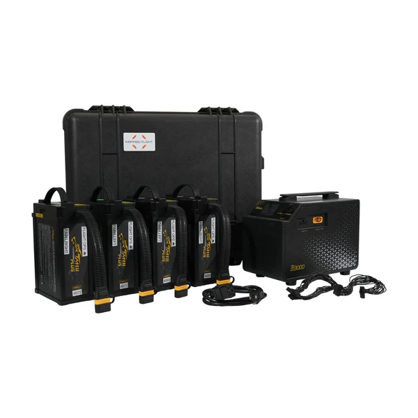 - Two battery sets (4x 16,000mAh) for high flight uptime